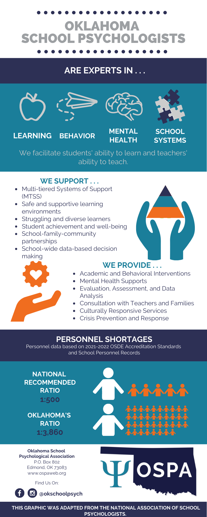 We challenge all Oklahoma school psychologists to review these messages to help develop your own message to address the question “Why Does Oklahoma Need School Psychologists?”